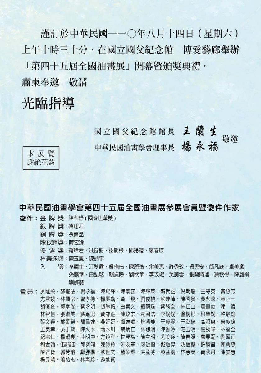 展出地點:國立國父紀念館 博愛藝廊